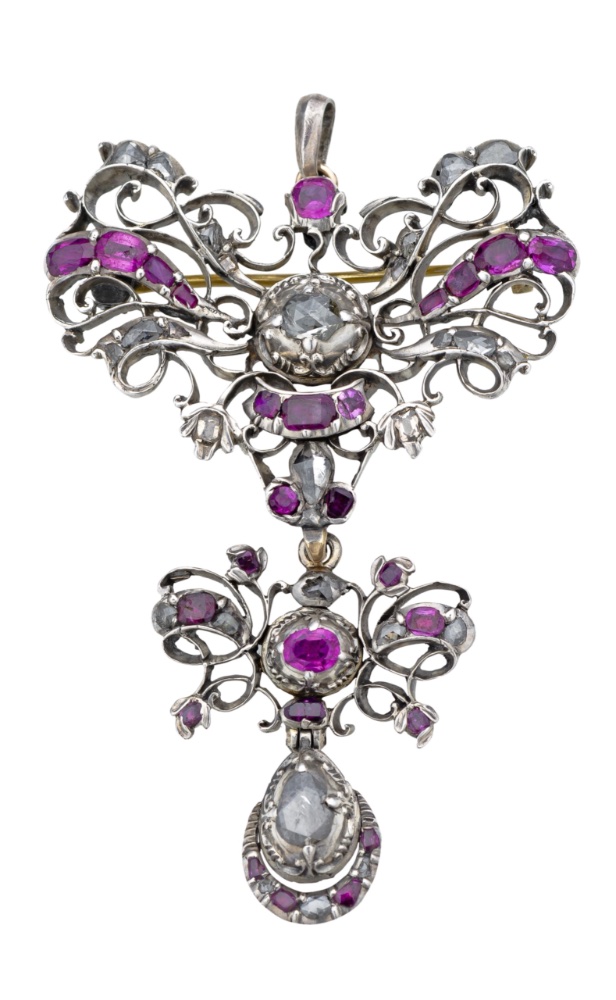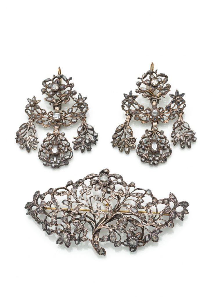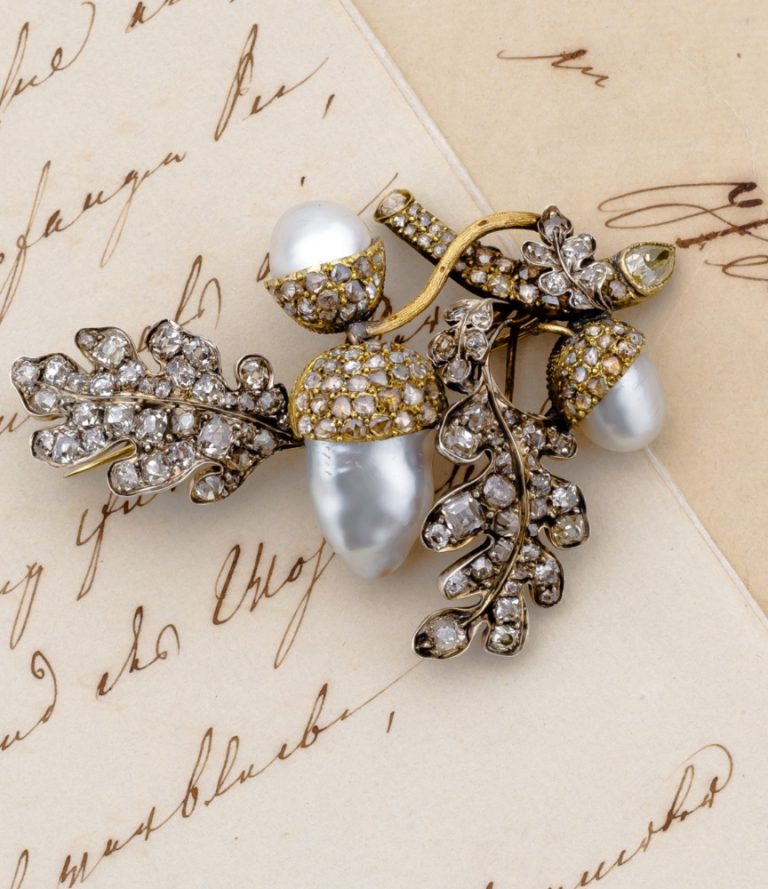 Gelbgold u. Silber mit Diamanten und 3 Naturperlen. Kopenhagen um 1842.