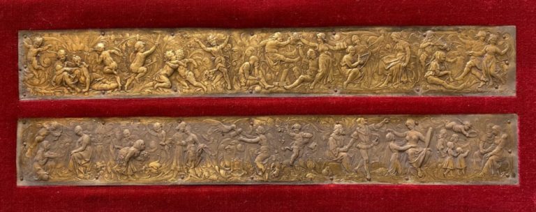 Paar Entwurfreliefs zu einer Silberdose für Königin Carmen Sylva, geb. Prinzessin zu Wied. Vermittelt als Schenkung an das Roentgen-Museum Neuwied.