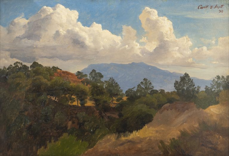 Landschaft bei Civitella, 5. Sept. 1839. Öl auf Papier/Karton. 35x52cm.