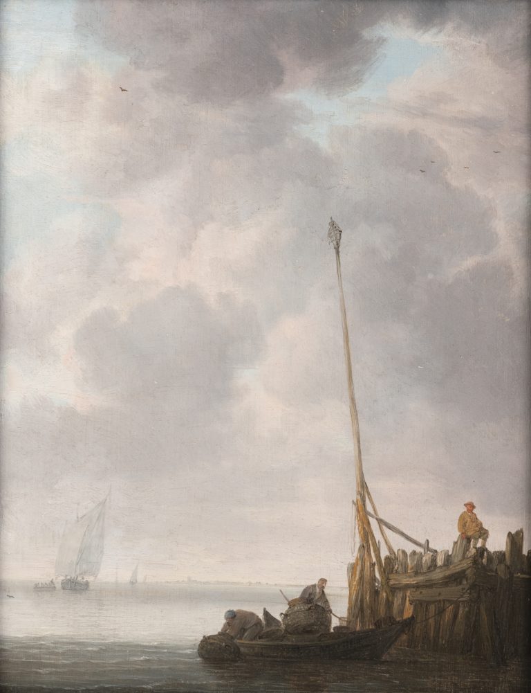 Im Morgengrauen am Hafen. Öl auf Holz. 34,5x26,5cm.