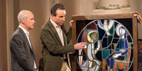 Nach Motiven des Malers David Teniers hatte Ende des 19. Jahrhunderts Friedrich Dorn diese beiden Glasbilder mit Wirtshausszenen geschaffen. Sendung vom 29. September 2018