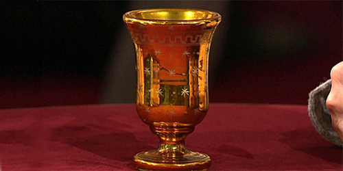 Silbernitrat ist die Zutat für das sogenannte Bauernsilber, das, wie bei diesem Glasbecher des späten 19. Jahrhunderts, durch Einbrennen des Salzes einen Goldton annimmt. Sendung…